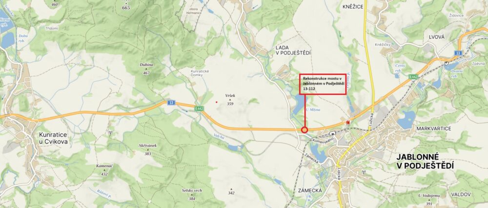 Zahájili jsme opravu mostu v Jablonném v Podještědí (13-112), který vede přes Heřmanický potok. Zhotovitelem za 20 mil. Kč je firma SAM silnice a mosty a. s.. Opravy potrvají do listopadu letošního roku.