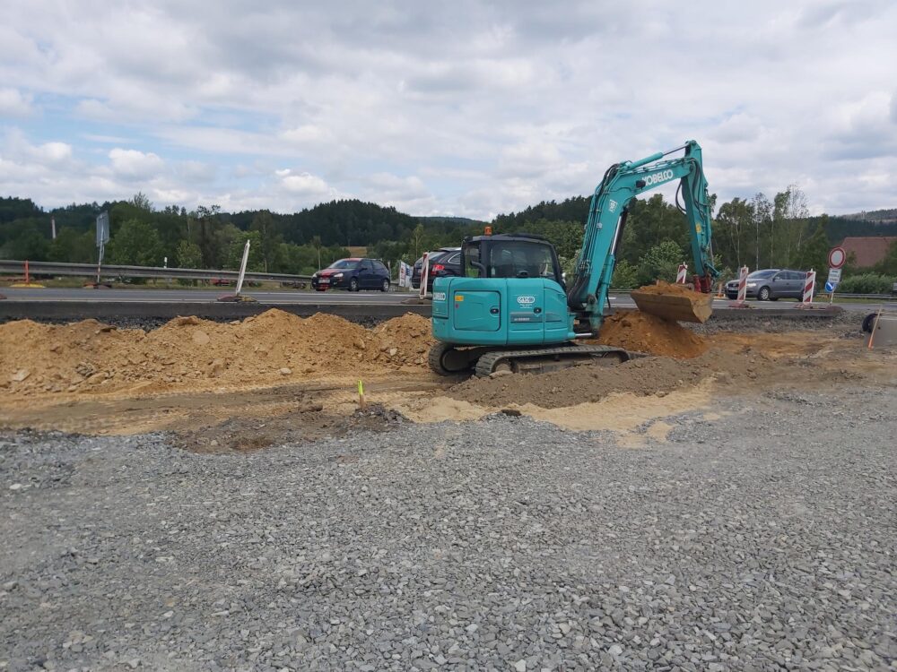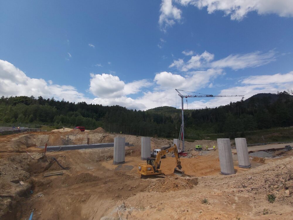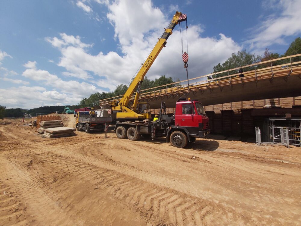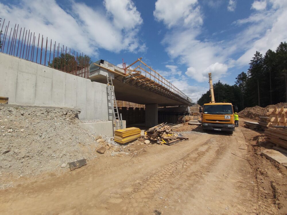 Na stavbě zkapacitnění silnice I/9 mezi Novým Borem a Svorem v těchto dnech probíhá na hlavní trase zhotovení stabilizovaného násypu, práce na jímkách propustků a realizace drenáží. Na mostě v místě budoucí mimoúrovňové křižovatky u Nového Boru probíhá bednění a betonáž dříku a zásyp základu opěry. Pokračuje také výstavba dvou mostních objektů přes migrační trasu. Na prvním ekoduktu ve směru na Svor nyní probíhá demontáž skruže a práce na římsách. Na druhém ekoduktu se pracuje na výztuži nosné konstrukce a připravujeme se na betonáž nosné konstrukce. Na zárubních zdích se zhotovuje zásyp a svahování terénu. Dále také pracujeme na dešťové kanalizaci a přeložce vodovodu.