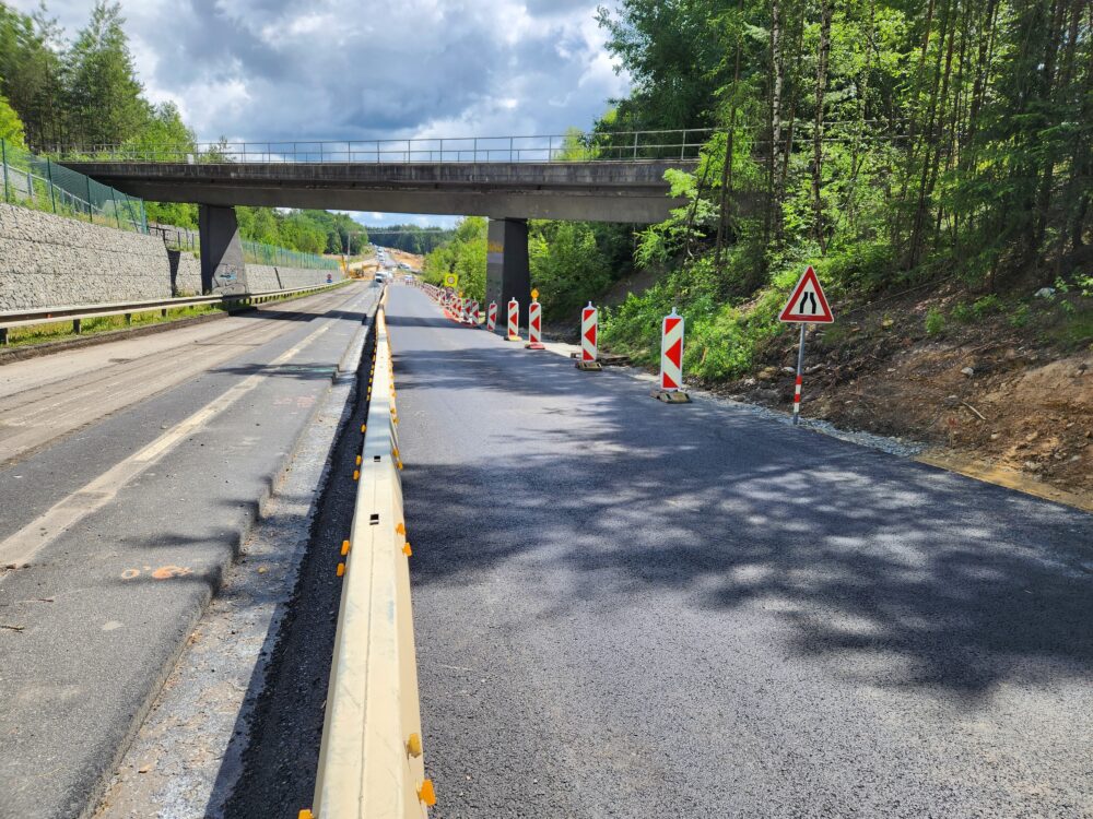 Na 400 metrů dlouhém úseku s kyvadlovým provozem řízeným semafory a sníženou rychlostí na 30 km/h byly práce na dočasném dopravním značení dokončeny a částečná uzavírka zde bude platit do poloviny srpna.