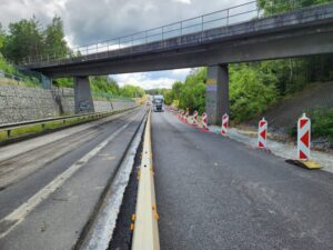 Na stavbě zkapacitnění silnice I/9 mezi Novým Borem a Svorem dnes v dopoledních hodinách probíhalo v úseku částečné uzavírky přemístění mobilních betonových svodidel a dopravního značení tak, aby mohl být kyvadlový provoz převeden do druhého jízdního pruhu a mohlo být zahájeno frézování. Práce oproti původnímu harmonogramu, který počítal s nočními hodinami, probíhaly za běžného provozu s vysokou intenzitou dopravy, proto zde vznikaly dlouhé kolony. Za tyto vzniklé dopravní komplikace se všem řidičům i cestujícím veřejnou dopravou velmi omlouváme.