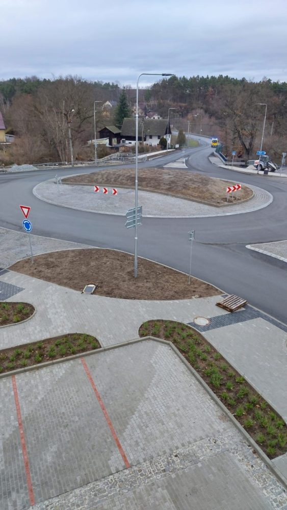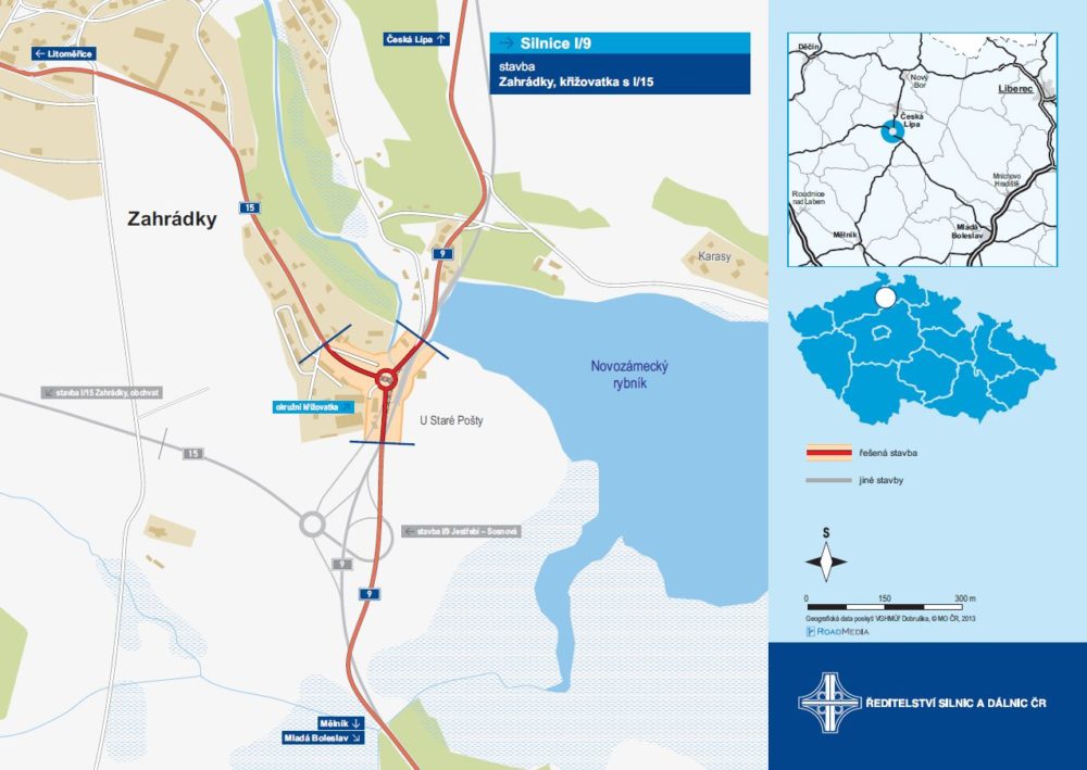 Se stavbou okružní křižovatky silnici I/9 a I/15 v obci Zahrádky na Českolipsku jdeme do finále. Dnes dopoledne bude křižovatka plně zprovozněna a dokončovací práce budou probíhat již za úplného provozu. Stavbu v hodnotě téměř 22 mil. Kč bez DPH, jejíž zhotovitelem je společnost Strabag a.s., jsme zprovoznili se 14denním předstihem.