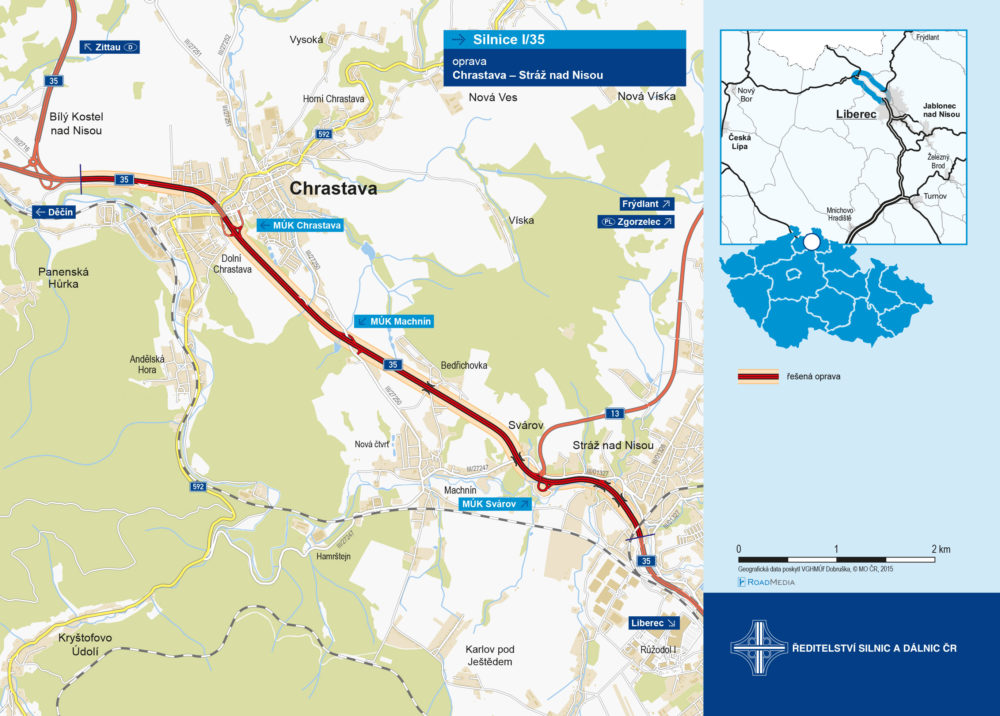 Po zimní přestávce se opět rozeběhla oprava druhé poloviny komunikace I/35 mezi Stráží nad Nisou a Chrastavou. Předpokládané dokončení opravy je 15. 7. 2021.