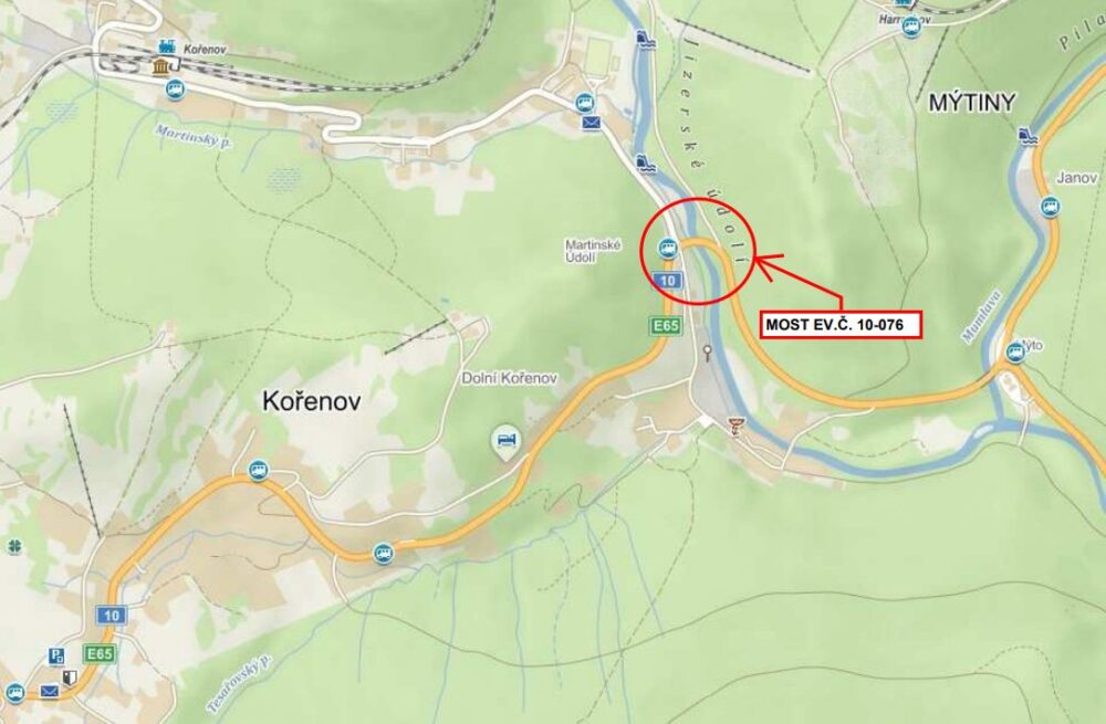 Na silnici I/10 u Kořenova opravujeme most (ev. č. 10-076) přes řeku Jizeru. Stavební práce jsou prováděny za částečné uzavírky komunikace I/10 a doprava je řízena semafory. Dokončení prací plánujeme v srpnu 2025.