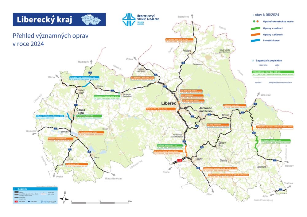 Podívejte se po měsíci na aktualizovaný přehled významných oprav Libereckého kraje. V tomto měsíci dokončíme opravu mostu na silnici I/35 u obce Žďárek. A v druhé polovině června zahájíme rekonstrukci dvou propustků na silnici I/9 v Jestřebí a mostu na silnici I/13 u Bílého Kostela n/N.