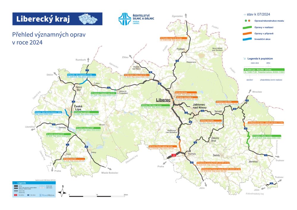 Přinášíme aktualizovaný přehled významných oprav a staveb v Libereckém kraji. Aktuálně probíhá 8 akcí a 11 je v přípravě. Na začátku července jsme zahájili výstavbu nové protihlukové stěny v Liberci a zprovoznili jsme stavbu na sil. I/9 mezi Cvikovem a Novým Borem.