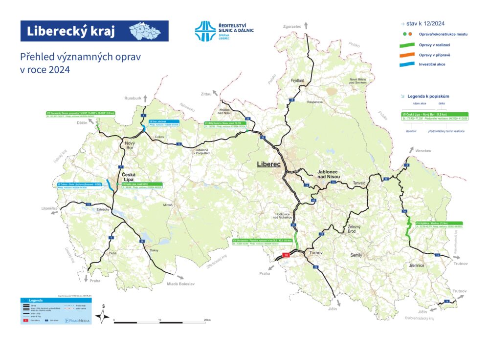 Aktuální přehled významných oprav a staveb v Libereckém kraji, tentokrát za měsíc prosinec. Stavební sezóna je pomalu u konce. A Správa Liberec nyní realizuje 2 investiční akce na silnici I/9. Z významných oprav jsou aktivní 2 – „I/13 Bílý Kostel nad Nisou, most 13-118“ a „I/9 Česká Lípa, most 9-053“, na kterých obnovíme provoz do konce tohoto týdne.