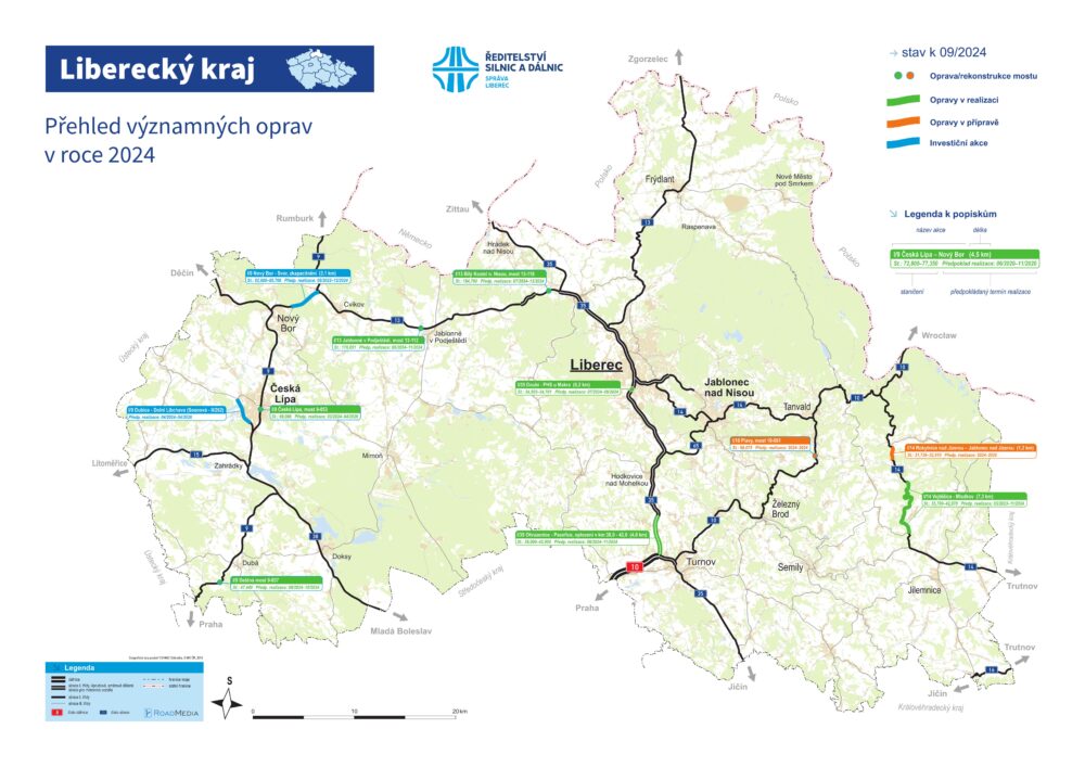 Přinášíme aktualizovaný přehled významných oprav a staveb v Libereckém kraji. Aktuálně probíhá 9 velkých akcí a 2 jsou v přípravě. V září např. dokončíme stavební práce na silnici I/35, kde budujeme novou protihlukovou stěnu.
