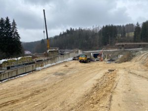 Stavební práce na rekonstrukci mimoúrovňové křižovatky Rádelský mlýn, která se nachází na silnici I/35 mezi Turnovem a Libercem, intenzivně pokračují. V těchto dnech probíhají práce zejména na mostních objektech.