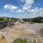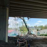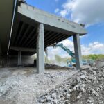 První most (ev. č. 35-024..2) ve směru z Prahy do Liberce je úspěšně zbouraný nad průmyslovým areálem a do konce tohoto týdne zde budou zdemolovány zbylá pole. Druhý most (ev. č. 35-022..2) je kompletně zdemolovaný a probíhá zde úklid a drcení sutě. Zároveň zahájíme přípravy na přeložce teplovodu a založení budoucí opěrné stěny.