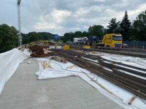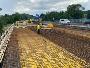 V těchto dnech se již finišuje armatura pro druhou polovinu nového železobetonového mostu na silnici I/35 v Doubí u Liberce (ev. č. 35-029..2). Most bude zprovozněn letos na podzim. Rekonstrukce mostu začala v polovině dubna letošního roku demolicí starého nevyhovujícího mostu.