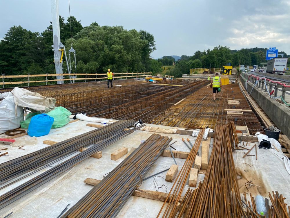 V těchto dnech se již finišuje armatura pro druhou polovinu nového železobetonového mostu na silnici I/35 v Doubí u Liberce (ev. č. 35-029..2). Most bude zprovozněn letos na podzim. Rekonstrukce mostu začala v polovině dubna letošního roku demolicí starého nevyhovujícího mostu.