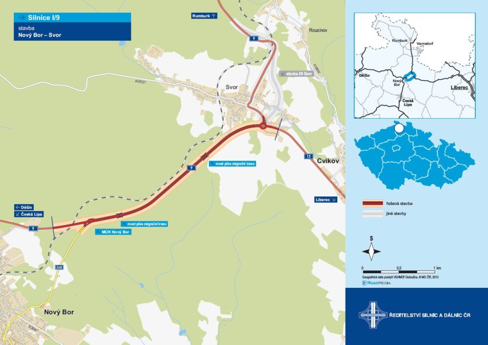 Liberecká Správa ŘSD ČR již v únoru začala s přípravnými pracemi pro stavbu zkapacitnění silnice I/9 v peážním úseku s I/13 mezi obcemi Nový Bor a Svor. Samotná stavba bude zahájena letos na jaře, po dokončení výběrového řízení a potrvá dvě stavební sezóny.