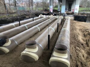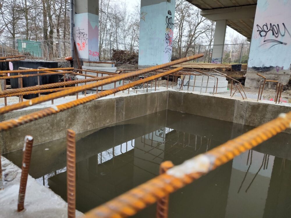 Během rekonstrukce odvodňovacího systému mostu v České Lípě na silnici I/9 jsme dnes provedli zkoušky vodotěsnosti potrubí, které dobře dopadly. Vodu jsme do sklolaminátových trubek čerpali z řeky Ploučnice za pomoci motorového čerpadla. Za necelých 5 hodin jsme potrubí naplnili téměř 81 kubíky vody. Během 24 hodin se sledovaly případné úniky a pokles hladiny, které nebyly zaznamenány. Potrubí zůstane ještě dalších 24 hodin napuštěné, zkoušky tedy probíhají dohromady 2 dny. Stavební práce na dvou retenčních nádržích probíhají pod mostem bez omezení provozu a jejich dokončení plánujeme v dubnu.