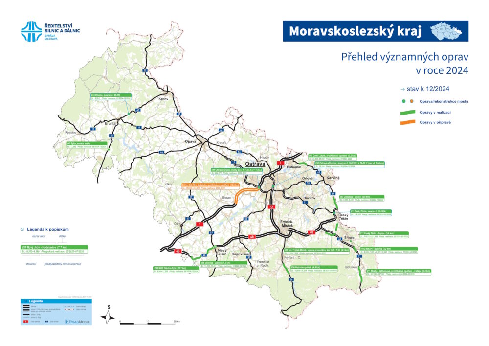 Poslední letošní aktualizace velkých oprav organizovaných zejména Správou Ostrava. Řada projektů končí, ovšem vstříc kvalitě odvedené práce nastala shoda o prodloužení některých rekonstrukcí do teplejšího období. Posun dokončení oprav nastal zejména na jihovýchodě kraje. Během zimní pauzy bude zajištěn obousměrný provoz přes staveniště.