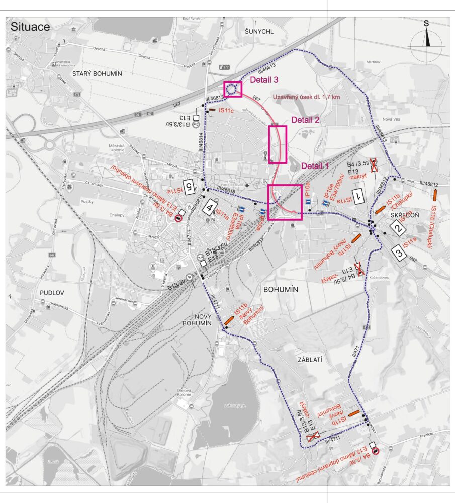 Dodavatel požádal o částečnou uzavírku, která byla schválena příslušným správním úřadem. Motoristé během stavby projedou jedním směrem po staveništi, protisměr vždy povede po objízdných trasách městem (ulice Opletalova, Rychvaldská, Bezručova apod.). Řidičům i místním občanům děkujeme za pochopení.