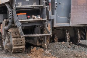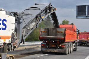 Frézování živičného povrchu silnice I/11 v místě okružní křižovatky se sil. III/01140 a III/4742.