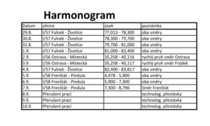 Od úterý 29. 8. 2023 začínají regenerační postřiky silnic I. třídy v Moravskoslezském kraji. Přesné lokace jsou uvedeny v přiložené tabulce, jistý je zásah na silnicích I/56, I/57 a I/58. Během údržby asfaltových vrstev dojde lokálně k částečným uzavírkám, řidiči vždy projedou po volné části vozovky buď kyvadlově v jednom pruhu pro oba směry kolem semaforů, nebo zúžením do obousměrného režimu pruhů 1+1. Konečné uspořádání jízdních pruhů určí šířka silnice v místech zásahu.