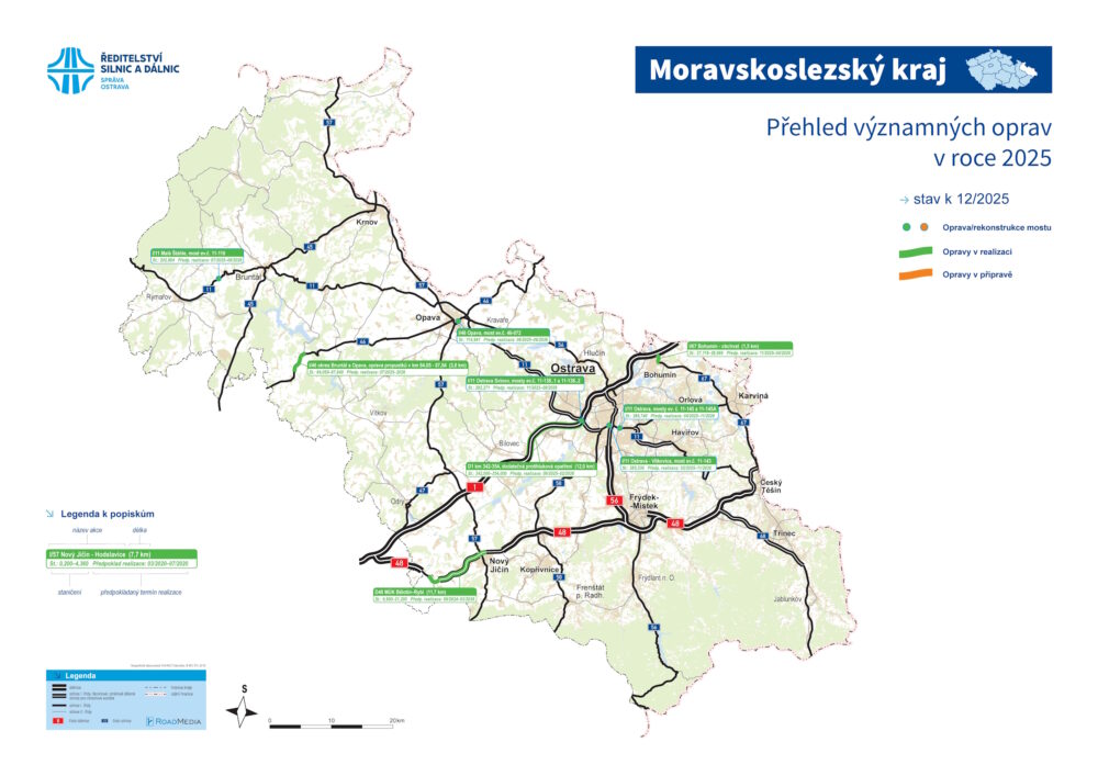 Rok 2025 končí, proto nastal čas už tradičního souhrnu investic Ředitelství silnic a dálnic v Moravskoslezském kraji, kde úspěšně funguje naše detašované pracoviště neboli Správa Ostrava. Zdejší provozní úsek vynaložil během posledních 12 měsíců na opravy cca 684,3 milionu Kč a na letní i zimní údržbu přibližně dalších 573,6 milionu Kč.