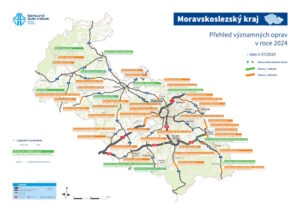 Ředitelství silnic a dálnic v Moravskoslezském kraji zastupuje Správa Ostrava, která prostřednictvím provozního úseku plánuje do roku 2024 investice ve výši přibližně 1,16 miliardy českých korun. Z těchto přidělených finančních prostředků náleží cca 609 milionů Kč na údržbové práce, zbytek vysoké částky pomáhá plnit účel provádění oprav svěřených silnic v kraji. Významnou část prostředků máme zasmluvněných, nicméně mnohé činnosti či opravy budou teprve soutěženy, proto může docházet k dílčím změnám hodnoty přidělených financí. Nových oprav nyní v kraji připravujeme zhruba 40, jak přehledně znázorňuje přiložená mapa obsahující dříve zahájené i dosud probíhající akce z loňského roku. Letošní rekonstrukce proběhnou po celém kraji v souladu s trvalým zvyšováním bezpečnosti silničního provozu a růstem kvality tuzemské dopravní infrastruktury.