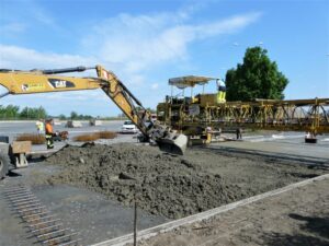 Finišují práce na opravě chodníků a dlažeb, započala pokládka cementobetonového krytu u stání pro kamiony.