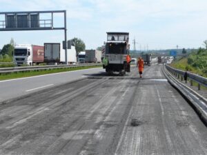 Probíhají dokončovací opravy levého pásu, v protisměru začalo odstraňování nevhodného materiálu z aktívní zóny tělesa dálnice.