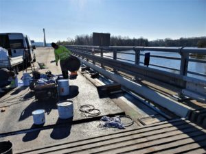 Provádění stavebních prací, rekonstrukce pravé části mostu (směr Bohumín).