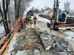 Probíhající oprava mostu v Oldřichovicích dnes 15. 4. pokračuje čištěním mostovky, bouráním římsy a instalací ochranné lávky. Podle platného harmonogramu stavby bude následovat odkop přechodové oblasti a montáž záporového pažení za účasti těžké techniky.