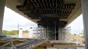 Podél budoucího připojení dálnice D56 k dálnici D48 je aktuálně plánována pokládka zpevněného kameniva a provádění armovaného násypu. U mostu přes Kvapilovu ulici tento týden dojde k odbednění a montáži skruže, zatímco další skupina pracovníků na estakádě zařídí založení nosných konstrukcí polí včetně dalšího předpínání a odbedňování konstrukcí u polí navazujících. Opěrná zeď Palkovické ulice se do neděle dočká výztuže a spádového betonu.