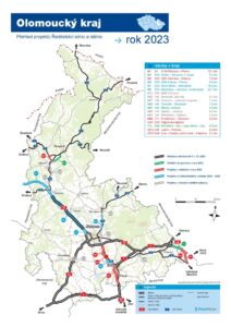 V závěru roku 2023 přinášíme aktualizovaný přehled situace staveb na území Olomouckého kraje. Barevně rozdělená mapa přehledně zobrazuje plánované, připravované, probíhající i zprovozňované projekty dálnic a silnic I. třídy. Podrobnější informace o stavbách přináší Mapová aplikace na adrese Ředitelství silnic a dálnic České republiky – ŘSD ČR (rsd.cz).