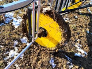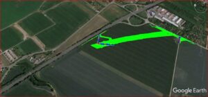 2) Geodetické vytyčení obvodu stavby (plocha záborů dočasných i trvalých). Tento postup je náročný na logistiku, aby se mezi sklizní a setím plodin na polích stihlo změřit vše včetně následného ověření. Zemědělci vytyčené kolíky (někdy) likvidují, ale nastávají také vhodnější situace dotazování, zda je možné orat či sít.