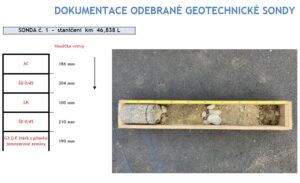 – Dále jsou součástí diagnostiky geotechnické sondy určené především do nestmelených vrstev konstrukce. Opět zde dochází k přesnému popisu vlastností použitých materiálů nestmelených vrstev a podloží, proto sondy mohou dosahovat hloubky až 1,5 metru. Zjištěná fakta vstupují do výpočtů zbytkové životnosti konstrukce.