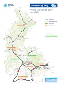 S oteplením postupně spouštíme plánované opravy na letošní rok. Velké akce jsou uvedeny v barevné mapě, kde se oranžové body (plány) po aktualizaci mění na zelené (zahájené práce). Doplnění informací pravidelně provádíme na síti X https://x.com/RSD_Olomoucky nebo prostřednictvím mapové aplikace (www.rsd.cz -> Mapová aplikace).