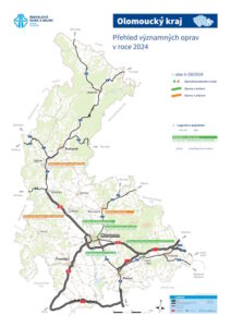 Konec prázdnin a nový školní rok přináší také pravidelně aktualizovanou mapu velkých oprav vedených hlavně Správou Olomouc. Zmizelo zbarvení dálnice D35 u Olomouce, protože provozní úsek krajské pobočky ŘSD rozhodl o posunutí opravy úseku Litovel–Křelov na příští stavební sezónu (vyhodnocení nabídek zhotovitelů včetně podpisu smluv by vyšlo na pozdní období roku a před zimou a zimní údržbou není žádoucí začínat rozsáhlou rekonstrukci). Další probíhající i plánované akce jsou k vidění v mapě nebo na internetových stránkách ŘSD www.rsd.cz (kliknout na odkaz Mapová aplikace).