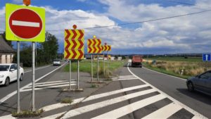 Na druhé straně kraje – v Hranicích – započala oprava poškození velkoplošné dopravní značky udávající směr výjezdů z kruhového objezdu na Olomoucké ulici. Předmětem plnění zakázky je výměna nevyhovujících lamel na původní nosné konstrukci. Maximální doba trvání náhrady byla stanovena na dva měsíce, předpokládáme ovšem zhotovení v dřívějším termínu.