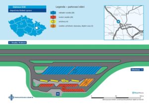 Práce na dálnici D35 v kilometru 259 u Olomouce řeší převis poptávky po stáních pro nákladní automobily. Kromě parkovacích míst došlo k doplnění tuzemské silniční sítě o nové místo plnohodnotného odpočinku. V rámci rozšíření staré odpočívky jsme přistoupili k položení inženýrských sítí, proběhly opravy povrchů včetně odvodnění a pod zemí nechybí ani odlučovač ropných látek. Stání pro kamiony vzniknou z cementobetonu, ostatní plochy pokryje asfalt. Součástí stavby jsou normované odbočovací a připojovací pruhy. Z doplňkové výbavy stojí za zmínku například osvětlení LED, lavičky, stoly, kamerový dohled, systém pro sledování obsazenosti parkoviště nebo takzvané korporátní toalety.