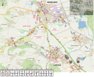 Zhotoviteli byla silničním úřadem schválena úplná uzavírka výjezdu i nájezdu. Během oprav proto vzniknou značené objízdné trasy většinou vedené na nejbližší křižovatky, kudy se řidiči dostanou k požadovanému cíli (jednotlivé varianty opět popisuje přiložená mapa).