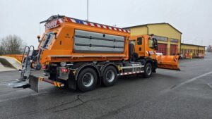Sestavu sypačů tvoří převážně verze komplet classic s teleskopickou nebo sklopnou radlicí šířky pěti metrů. Většinou se jedná o ověřenou koncepci nástaveb EPOKE SH3810 Sirius o objemu zásobníku soli 7 m³ s nádrží na solanku velikosti 3 180 litrů. Jedno z našich středisek, které provádí údržbu dálnice s mnoha mosty, obdrží kombinovaný sypač EPOKE SH4910 Sirius Combi. Kromě posypu suchou nebo zkrápěnou solí umožňuje velice přesnou aplikaci i samotné solanky prostřednictvím lišty s postřikovacími tryskami nebo libovolnou kombinaci všech výše uvedených technologií zimní údržby. Kapacita solankových nádrží je u této nástavby navýšena na necelých 7 000 litrů a výrazně výkonnější je i systém čerpadel. Úplnou novinkou u tohoto kompletu bude možnost vyzkoušet aplikaci solanky břitem speciálně uzpůsobené radlice s označením TEPLEX.