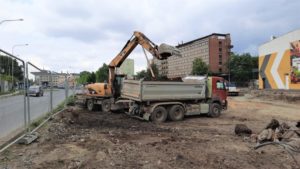 Termín ukončení objízdné trasy je konec srpna, proto neustávají předem rozvržené práce. Minulý týden v areálu Juty docházelo k třídění výkopu, od Alberta byl odvážen nebezpečný odpad a v ulici Tovární proběhla demolice stávajícího parovodu před uložením parovodu nového. Současně se na staveništi pokračovalo s přeložkami kanalizace.