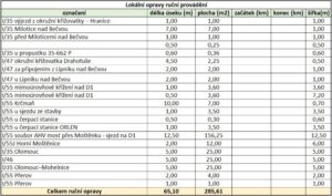 Upozorňujeme, že od pondělí 2. 12. 2024 začínají lokální opravy výtluků a nerovností střední i jižní části Olomouckého kraje. Dělníci vždy uzavřou maximálně jeden jízdní pruh, průjezd vozidel zůstane zajištěn protisměrem nebo po neopravované části komunikace (bez potřeby objízdných tras). Práce jsou vytipovány postupně zhruba na 30 místech v poškozených úsecích dálnic D35, D46 a silnic I/35, I/46, I/47 a I/55 (přesný seznam včetně detailů níže).