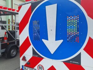 Staničení: D46P, směr Olomouc, pomalý pruh, 36 – 38,4 km, EXITy zachovány.