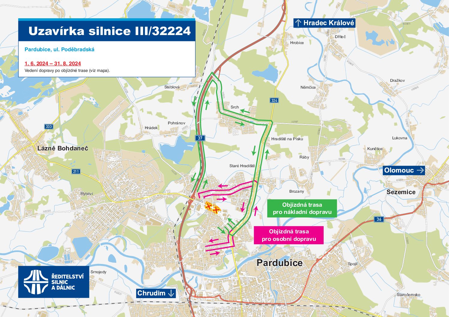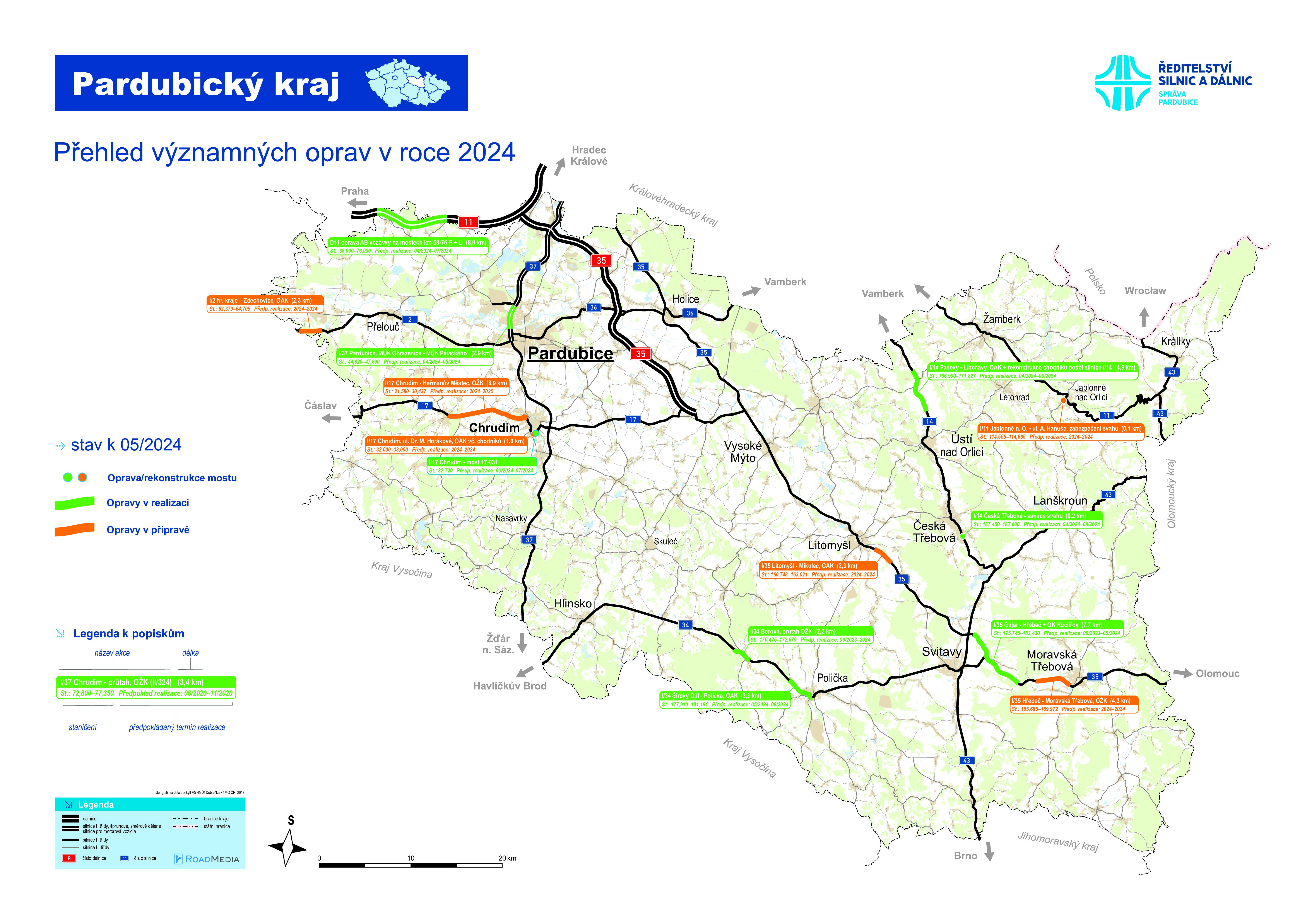 Aktualizovaný přehled oprav v Pardubickém kraji