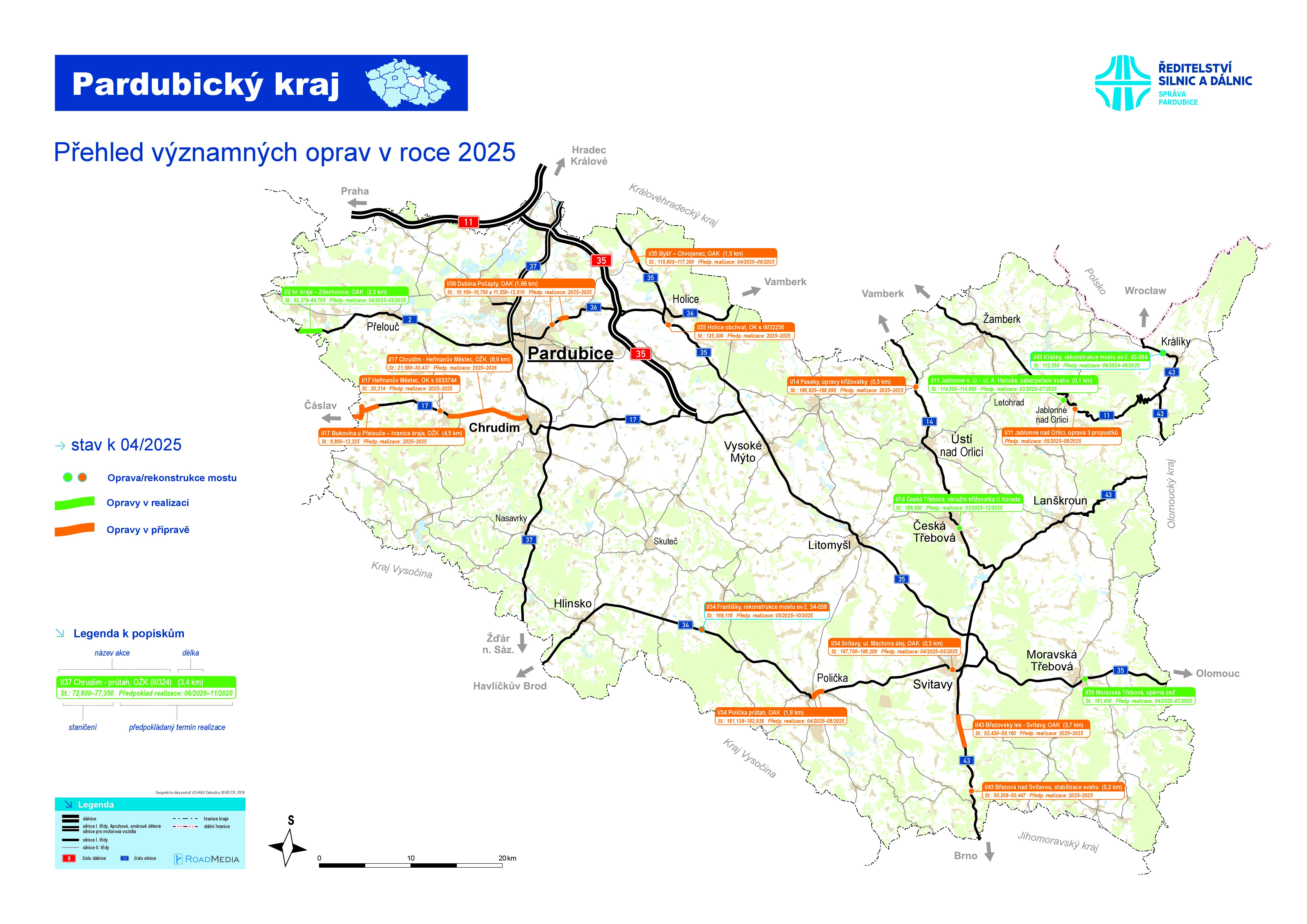 Přehled oprav návozových tras D35 Opatovice-Časy