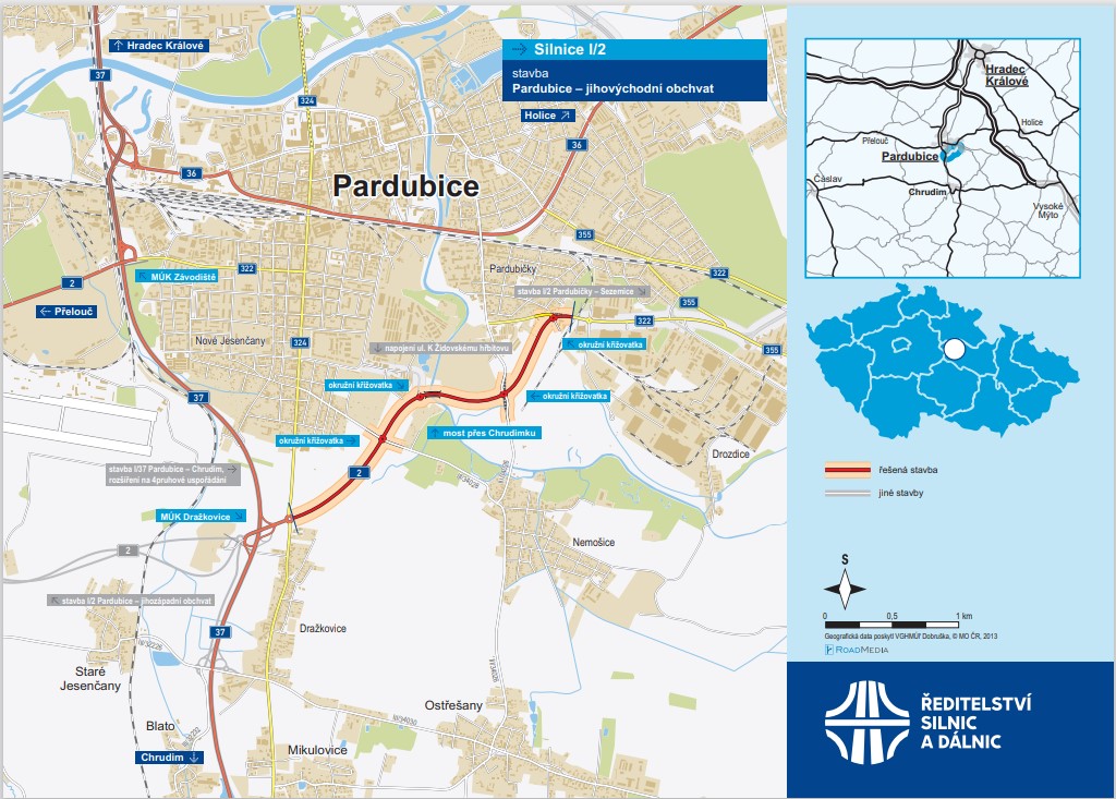 Podrobné informace ke stavbě JV obchvatu najdete v naší mapové aplikaci I/2 Pardubice – jihovýchodní obchvat – Mapová aplikace – ŘSD s. p.