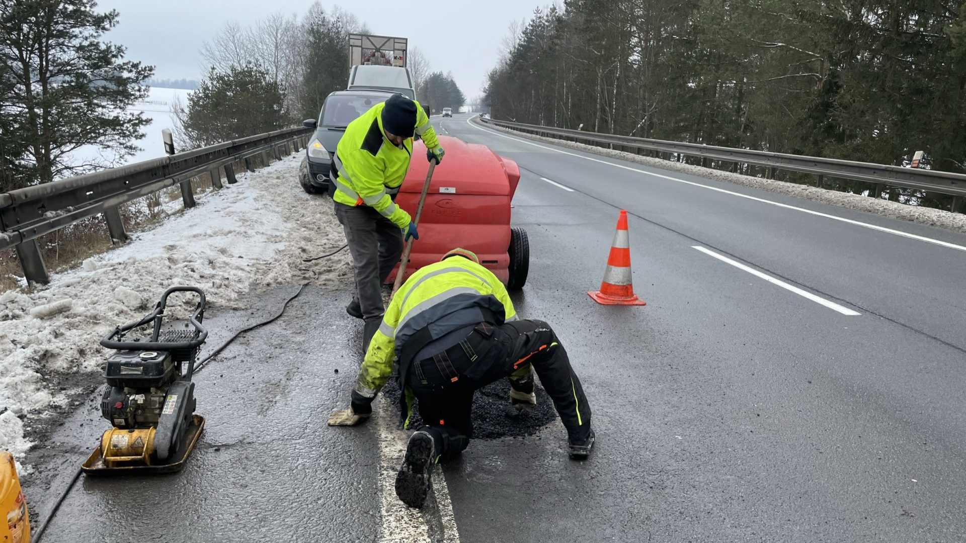 V těchto dnech zapojuje ŘSD do oprav poškozených vozovek v Pardubickém kraji mimo jiné také unikátní mikrovlnnou technologii FUTTEC. V porovnání se studenou asfaltovou směsí, která se k havarijním opravám výtluků využívá v zimě nejčastěji, má konečný výsledek FUTTECu delší životnost a trvanlivost. Výhodou zmíněné technologie je také její celoroční využití.