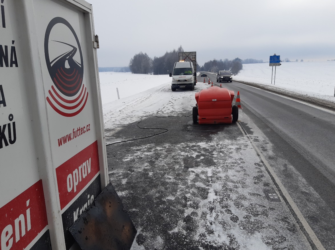 V těchto dnech zapojujeme technologii FUTTEC do oprav výtluků na silnici I/35, a to v úseku od čerpací stanice Benzina GAJER až po křižovatku silnic I/35 a I/43 (Opatov).