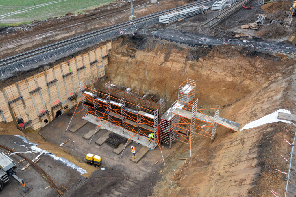 Během prosince 2022 proběhla montáž výztuže OP2 dříku, montáž bednění OP 1,2 dříku a betonáž OP 1,2 dříku.
