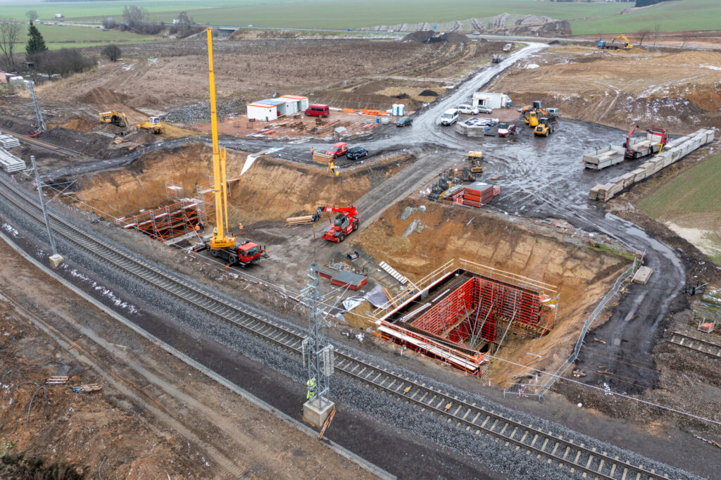 Práce na I. etapě úseku dálnice D35 Janov – Opatovec, železničním mostě, jsou v plném proudu.