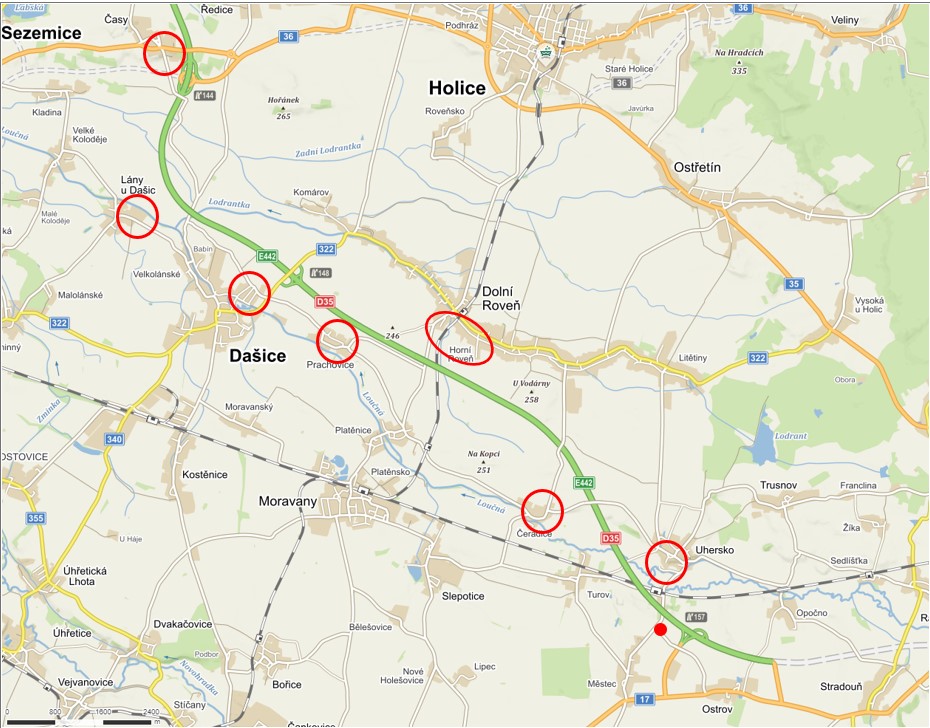 Podle závazného stanoviska Krajské hygienické stanice Pardubického kraje bylo k měření hluku po spuštění dálnice stanoveno pouze jedno místo měření, a to v obci Městec. ŘSD ovšem v rámci dobrých vztahů s okolními obcemi a ve snaze předejít případným nesrovnalostem, navrhlo provést měření hluku v dalších sedmi obcích, které jsou nejvíce zasaženy. Jde o obce: Časy, Lány u Dašic, Dašice, Prachovice, Dolní Roveň, Čeradice, Uhersko. Nově navržená místa pro měření hluku budou prověřena KHS a prováděcí laboratoří, a teprve poté budou finálně odsouhlasena, případně zvolena místa jiná. O výsledcích místního průzkumu budou jednotlivé obce informovány.