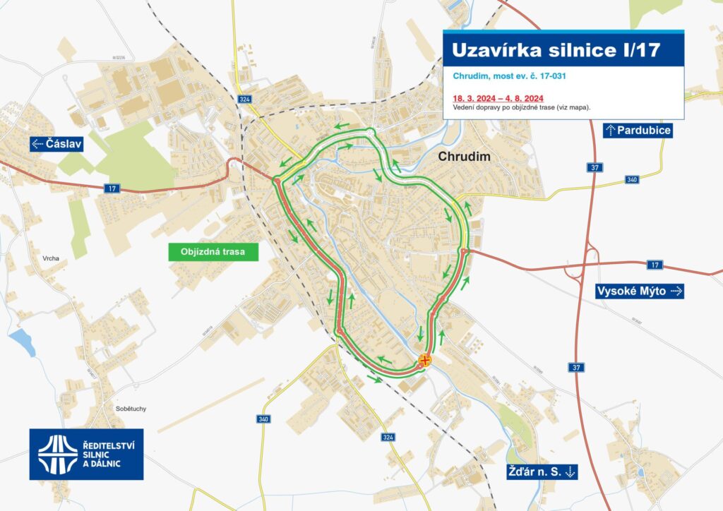 V pondělí 18. března začíná z důvodu zahájení stavebních prací na opravě mostu přes řeku Chrudimku úplná uzavírka silnice I/17 v Chrudimi.