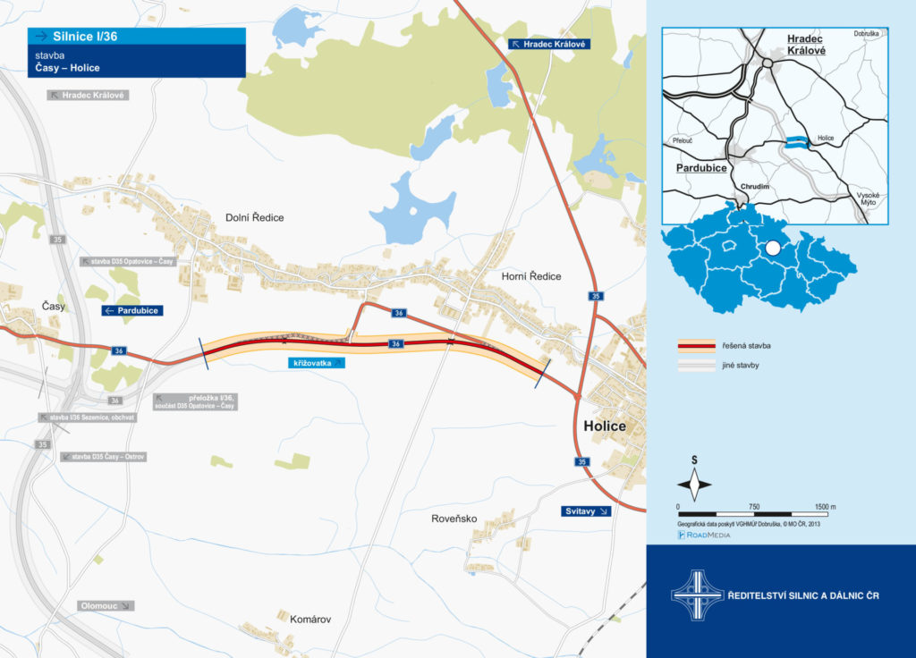 Na plánovanou stavbu přeložky silnice I/36 Časy – Holice probíhá nyní výběrové řízení na zhotovitele. Stavba o celkové délce 3 440 m bude dle předpokladu zahájena v květnu 2022.